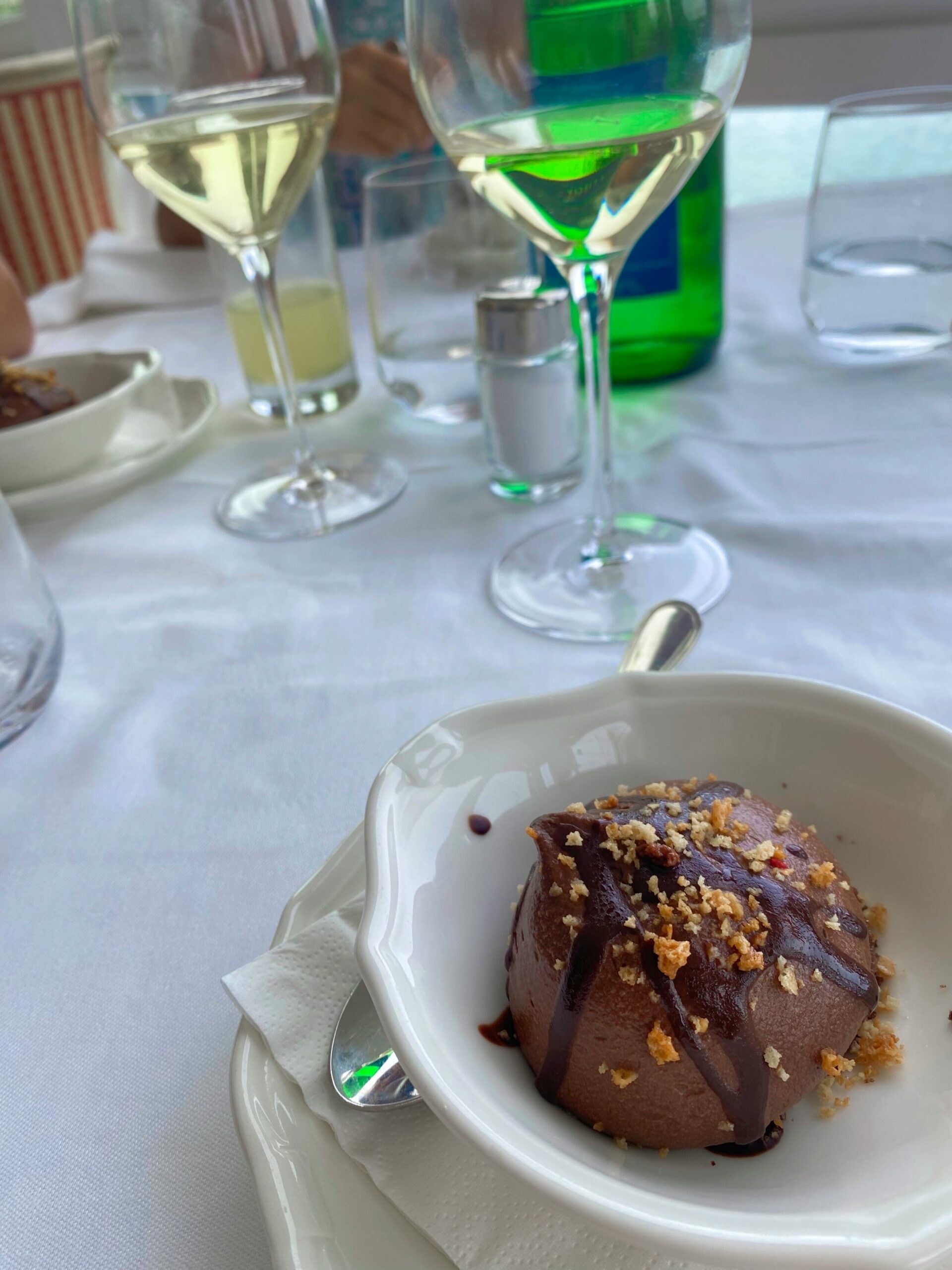 This is where we had the famous zucchini pasta, along with chicken, salad, bread, and a chocolate hazelnut mousse dessert.