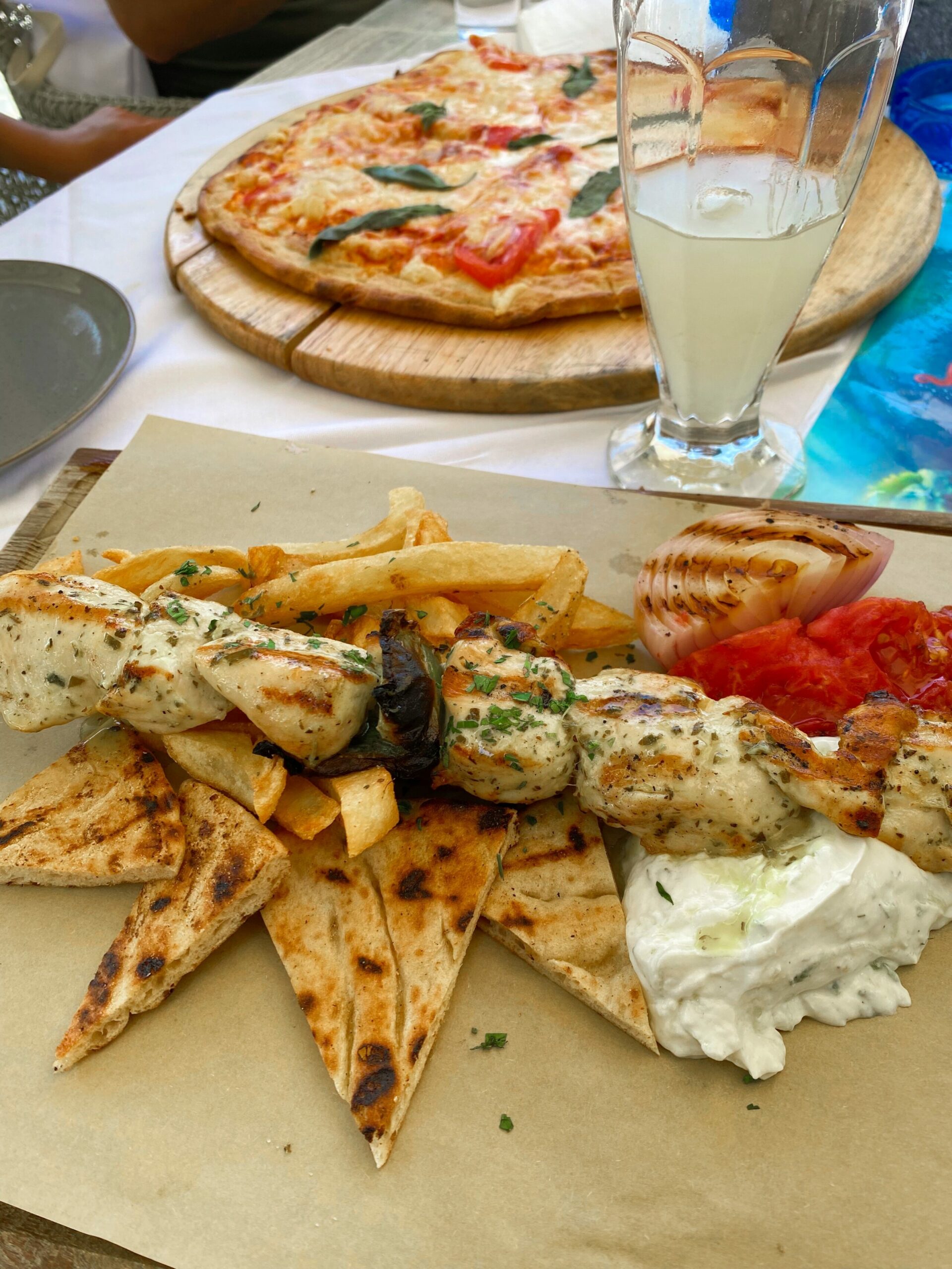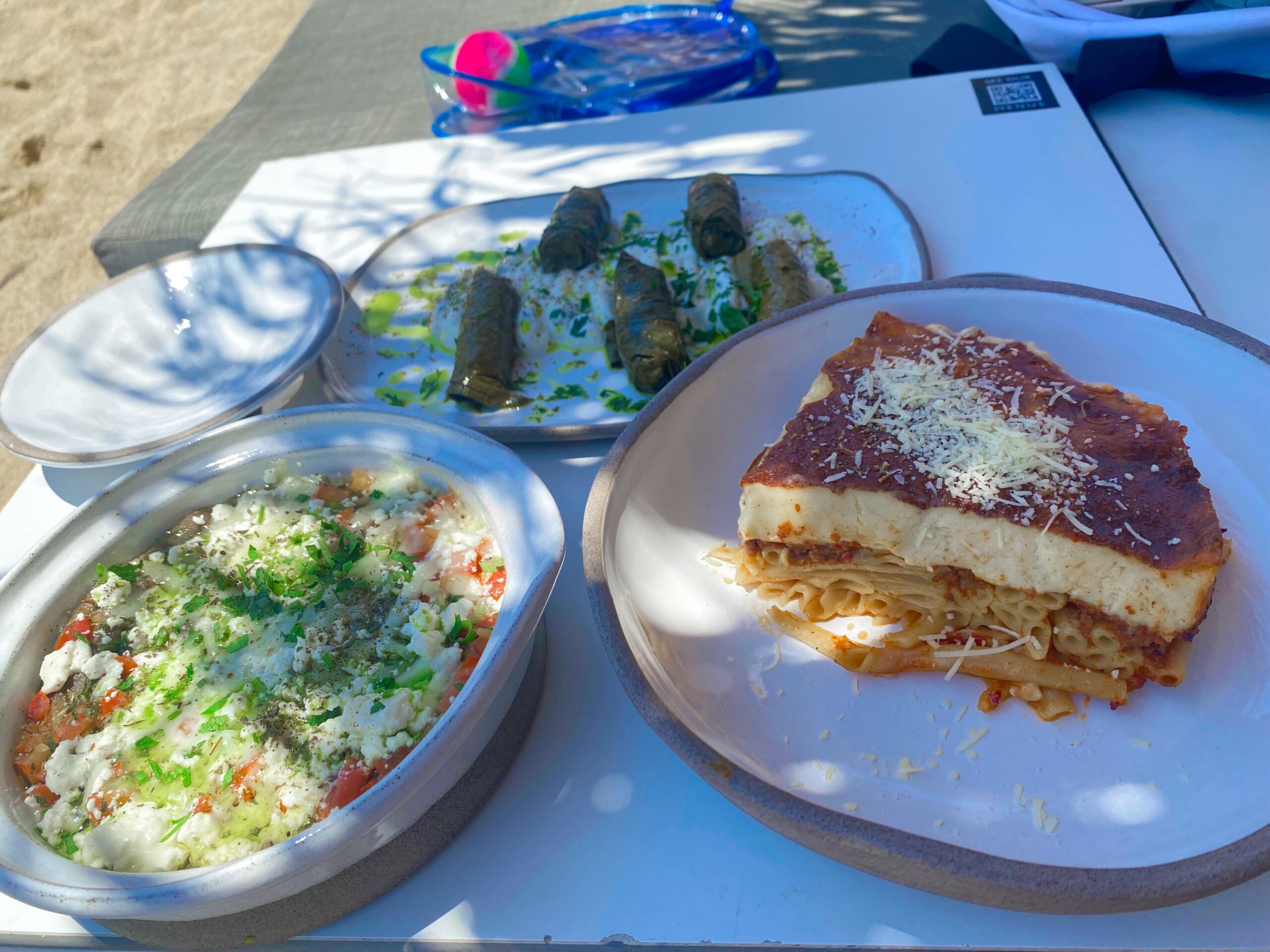 Before we left, they gave us a list of everything to order while we were in Greece. The Pilot wrote down everything phonetically so we’d be able to pronounce it, like, “Gotta lotta booty yo.” I think we made them proud; we tried almost everything they suggested between our time in Mykonos and Chania. The food was out of this world incredible. So fresh, vibrant, and delicious. I highly, highly recommend the pastitsio, which is like a spaghetti lasagna with cheesy foam on top.