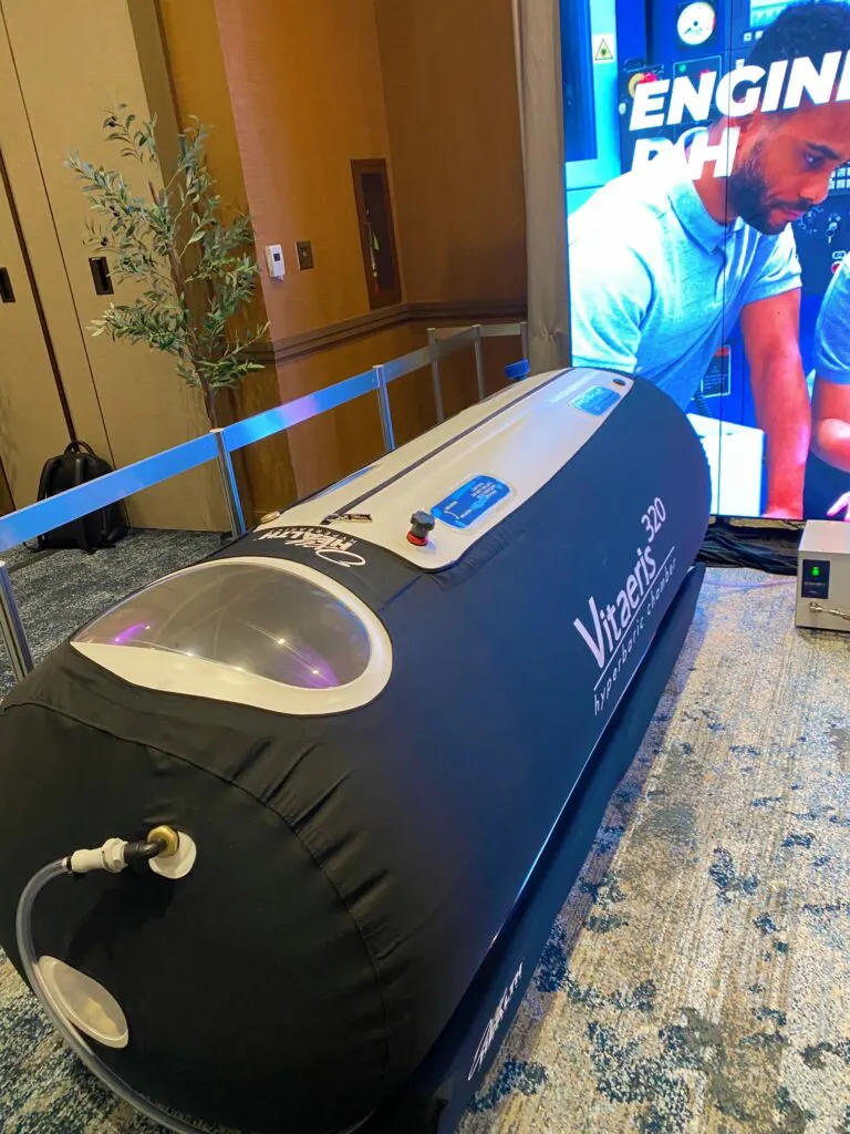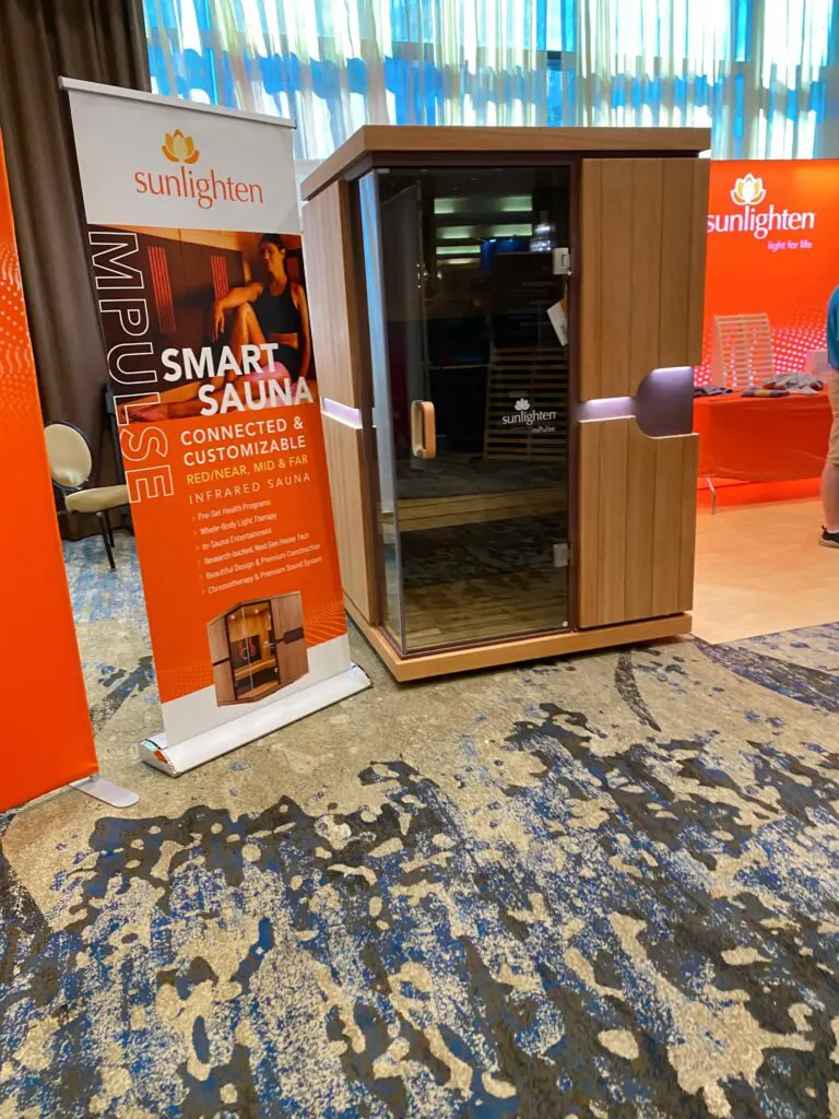 It was enormous, and included vendors for nutrition supplements, food, blue light glasses, skin care, Danger coffeee, saunas, Air Doctors, pillows, beddings, PEMF, lymphatic drainage, meditation, cold plunges, cryotherapy, books, wellness tests, IVs, fitness equipment, so.many.things. Stay tuned for my favorite things I tried in the tech hall, but here’s a sneak peek!