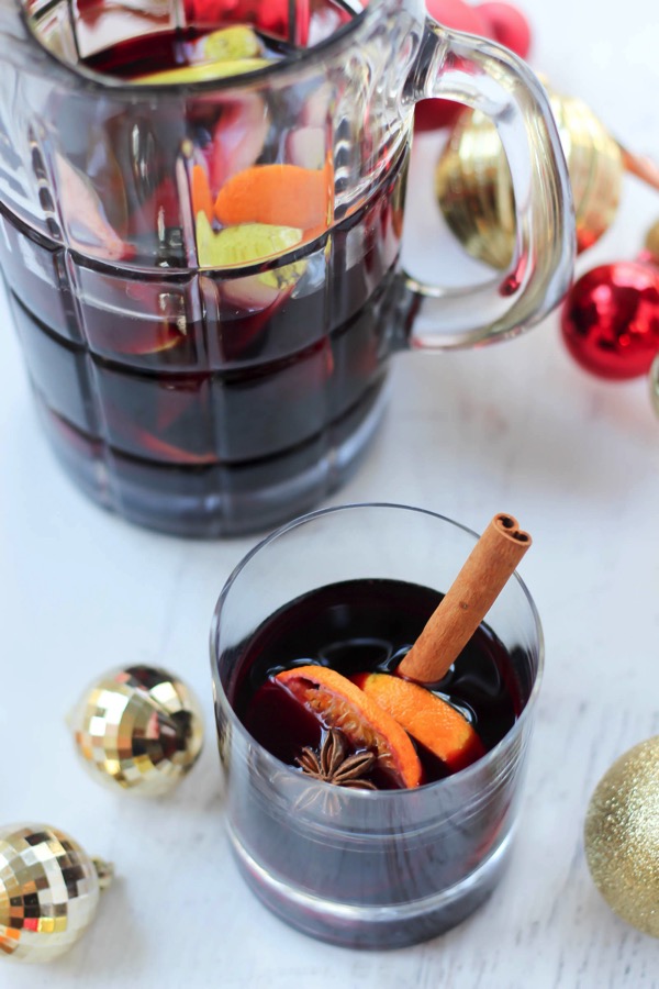 Holiday spice sangria! It’s made in advance of any holiday soirees, and the flavors just get better over the span of a few days. It’s perfect to take to parties, as it’s a fun switch-up from the usual bottle of vino.